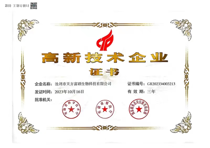 喜報(bào)!天方富硒生物科技有限公司獲評(píng)安徽省高...
